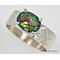Sparkling, oval cut Mystic Fire Topaz set in a four prong sterling silver mount on a textured sterling silver band. This non traditional style ring is very comfortable and fun to wear; an exceptional fashion statement to dress up of down. The perfect gift to treat yourself or that special someone.