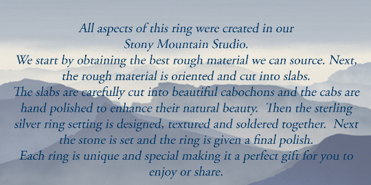 Thanks for visiting Stony Mountain Jewelry! Creating distinctive jewelry for you in a mountain top studio. Our work is hand fabricated in sterling silver and high karat gold. Using fine quality gemstones and our own hand cut cabochons, we are pleased to offer you many one-of-a-kind fine art jewelry pieces.